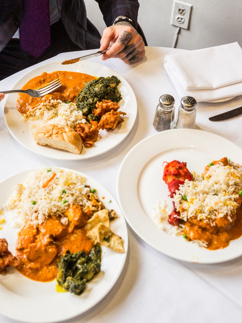 But when face-to-face with Punjabi chicken bathed in a rich, buttery tomato sauce, a dish both foreign and dangerously capable of splattering on Garbrandt’s slim custom-made suit and windsor-knotted purple tie, the champ hesitated. His manager, Ali Abdelaziz, wearing a glen plaid suit and a cashmere turtleneck and seated to Garbrandt’s right, interjects.
