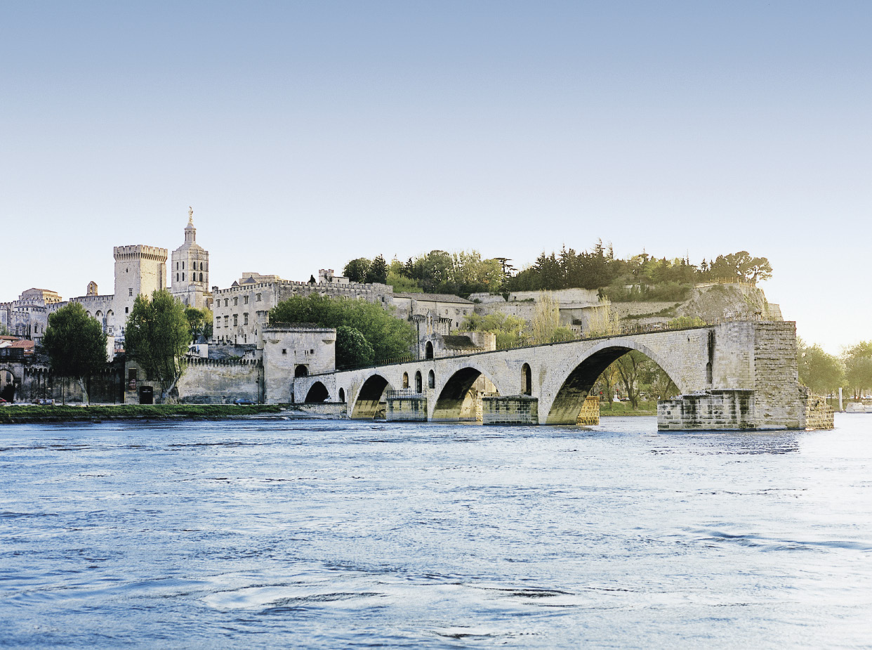 Rivers of stone, rivers of time; Avignon, the ancient French city on the banks of the Rhone River, sits at the confluence of both. The city, the largest in the southern department of Vaucluse, is best known for the Pont Saint-Bénézet—that famous broken bridge sung about by millions of francophone tots—and its greatest folly, the Palais des Papes, a sprawling papal complex dating from the 1300s.